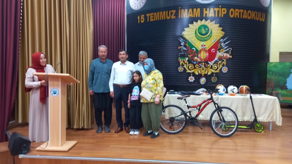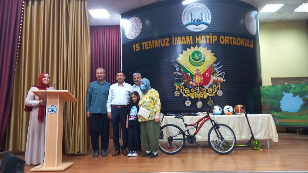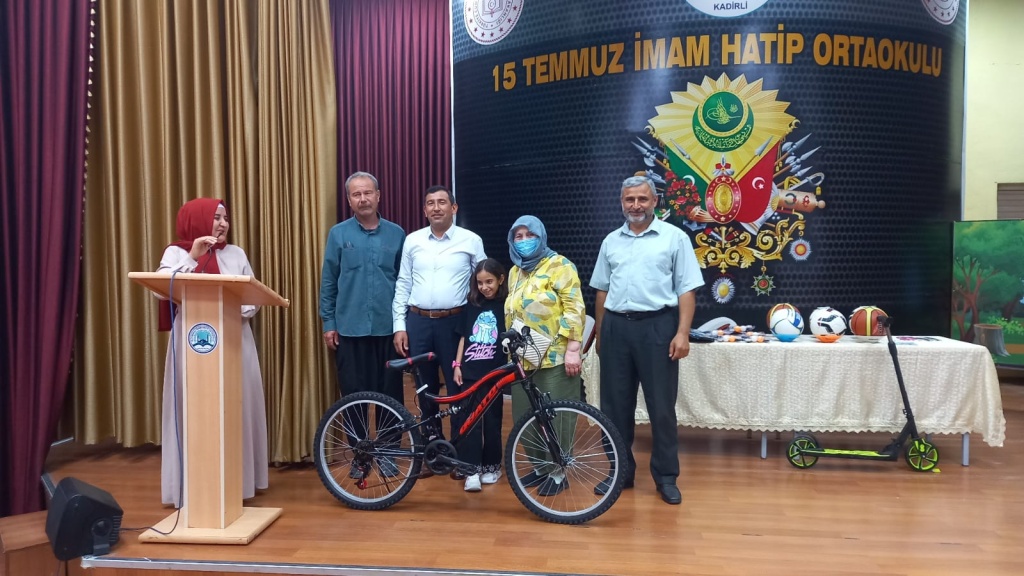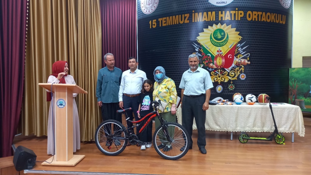 Kadirli 15 Temmuz İmam Hatip Ortaokulu tarafından gerçekleştirilen 4.sınıflara yönelik seviye tespit sınavında 4-B Sınıfı Öğrencimiz Zehra Buğlem ÇİĞİL Kadirli birincisi olarak 1.ödülü olan bisikleti törenle teslim almıştır.Öğrencimizi ve öğretmenimizi tebrik ederiz.